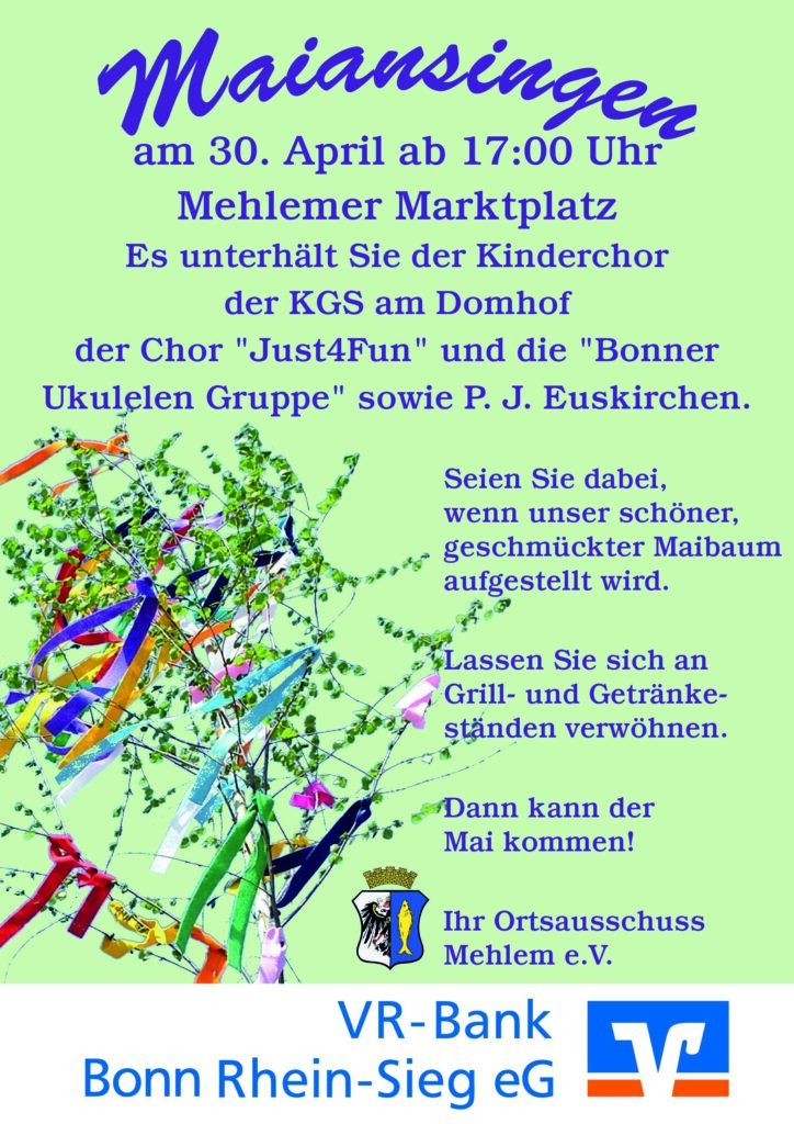 Freuen Sie sich auf Musik, kulinarische Genüsse und ein stimmungsvolles Beisammensein, wenn wir zusammen den Maibaum für den Mehlemer Marktplatz schmücken und beim Aufstellen des Maibaums dabei sind.